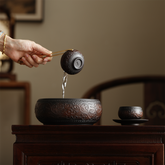 The tea washer (also known as a "cup washer" or "cup holder") is one of the common tea utensils in the tea ceremony, it plays an important role in traditional tea ceremonies. This purple pottery tea washer is decorated with traditional twined lotus relief, symbolizing continuous life, longevity, and wealth. It embodies the essence of Eastern aesthetics—elegance, balance and peaceful. Whether you're hosting a tea ceremony at home or quietly enjoying tea in the office, it keeps your tea table tidy and adds elegance to your tea ceremony.