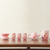 Enjoy a beautiful and romantic tea ceremony with this pink peach blossom tea set. Inspired by peach blossoms in spring, each piece is adorned with delicate peach blossoms. The soft gradient pink color and smooth, glossy glaze create a warm and soothing visual effect, while the delicate flowers add a touch of spring gentleness and tranquility. Making every brew a warm, peaceful, and wonderful experience—perfect for yourself or as a gift for someone special.