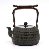 This Japanese cast iron teapot is crafted by skilled artisans through nearly seventy meticulous steps. Its shape is dignified and balanced, with a solid weight that feels reassuring in the hand. The design features a beautiful bamboo weave pattern and bamboo knot handle, creating a natural and elegant look. Cast iron teapots have excellent heat retention, keeping tea warm for a long time while enhancing its rich, smooth flavor. Elegant, practical and durable, it is very suitable for home use and also a good gift for anyone, perfect for any occasion: housewarming, wedding, Halloween, Thanksgiving, Christmas, anniversary gift.