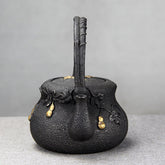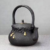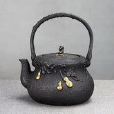 This Japanese cast iron teapot is inspired by the quiet rhythm of nature, symbolizing growth and vitality. The teapot is decorated with winding vines and gourds, the gilded gourd adds a touch of vitality and organic charm. Every brew brings a sense of peaceful - the steady weight of iron, the gentle warmth of pouring, and the rising aroma of tea create a serene moment that feels both calming and meditative. This is a practical teapot, also a good choice whether you use it at home, entertain guests, or give it as a gift.