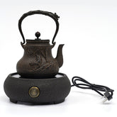 The Japanese Tiger Roar cast iron teapot is cast from pig iron and is handcrafted through multiple complex processes. Its body is decorated with stunning relief carving of a tiger descending a mountain - a roaring tiger with its mouth open, exuding power and grace. This lifelike carving captures a moment of wildness and unrestrainess, symbolizing strength and courage. The handle of the teapot is designed with a dragon winding around it, adding a touch of mysterious power, reflecting the balance and protection in traditional oriental culture.