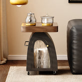 Stylish movable tea table—a beautiful decoration and a practical furniture. This small tea table is crafted from solid wood and carbon steel. Its sleek wooden top and curved metal base create a warm, modern aesthetic, while enclosed storage keeps essentials neatly organized. Stylish, compact, and practical, it easily moves wherever you need it—in the living room, on the porch, on the balcony, or next to the sofa. This movable tea table makes tea brewing convenient and easy, meeting the needs of brewing and storage anytime and anywhere.
