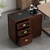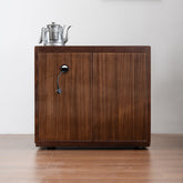 This is a stylish and convenient movable tea table. Crafted from premium walnut, it perfectly blends natural elegance with modern practicality. Designed for the modern tea enthusiast, it has a built-in electric heating system and an integrated tea brewing mechanism, you can easily pump water and brew tea with just one touch. The spacious interior storage space keeps everything organized and within easy reach. Whether you're enjoying tea in private or entertaining guests, this tea table makes tea preparation effortless and elegant.