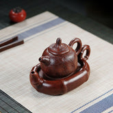 This teapot is made of raw red clay, a type of Yixing clay. The characteristics of this clay is warm and elegant, and its texture feels rustic and natural. Designed with the concept of "two teapots in one," the teapot within the teapot means abundant blessings and double happiness. The traces of hand-kneading showcase the superb skills of the craftsmen.